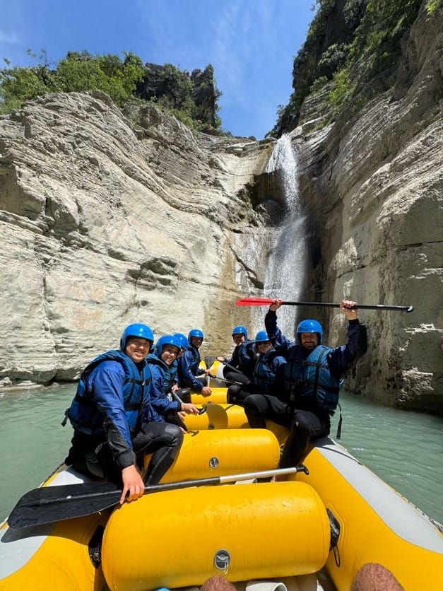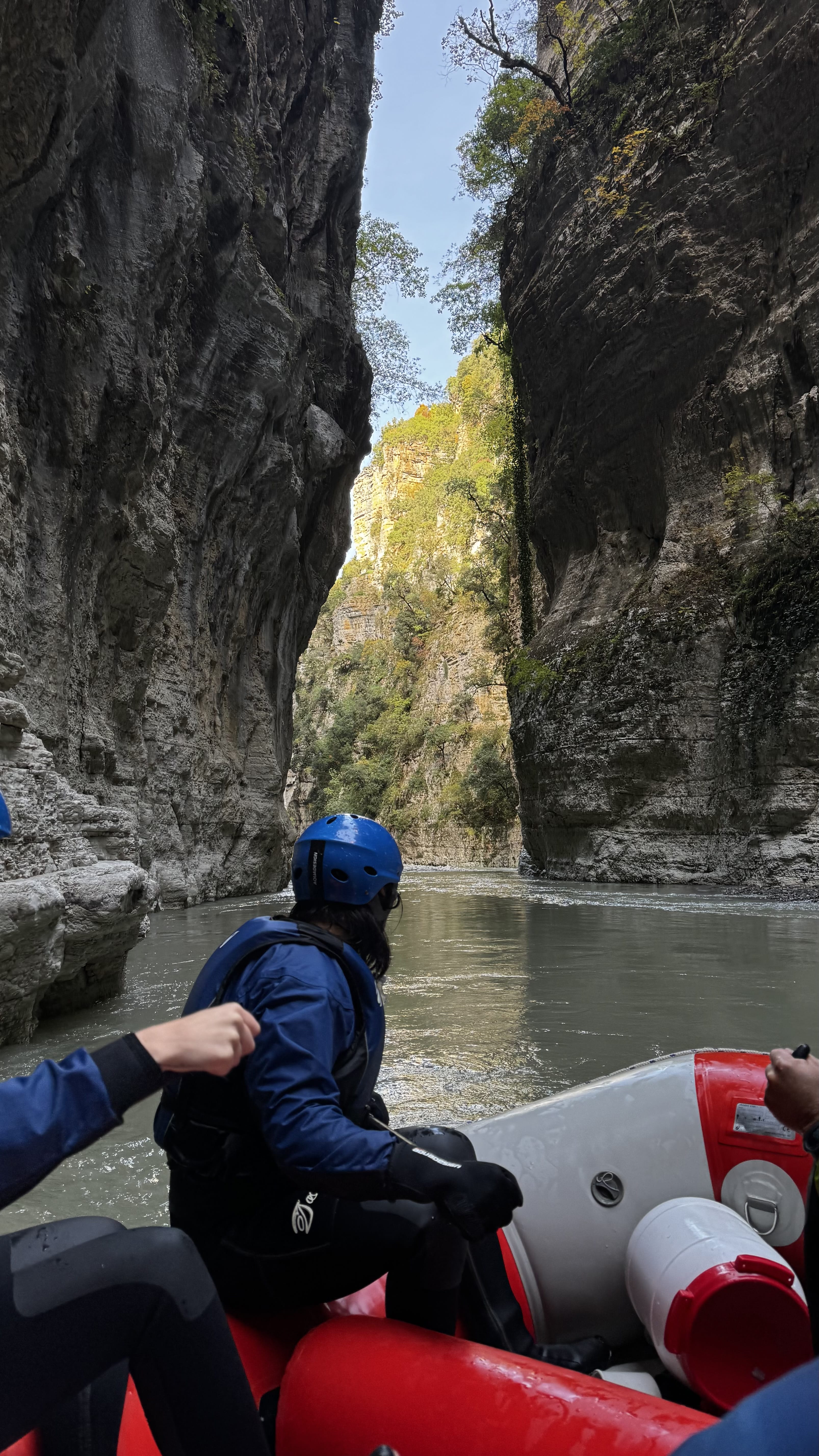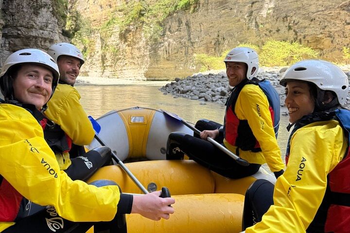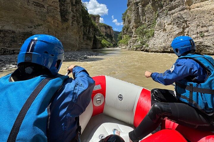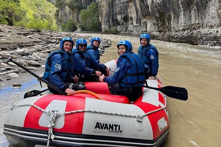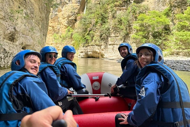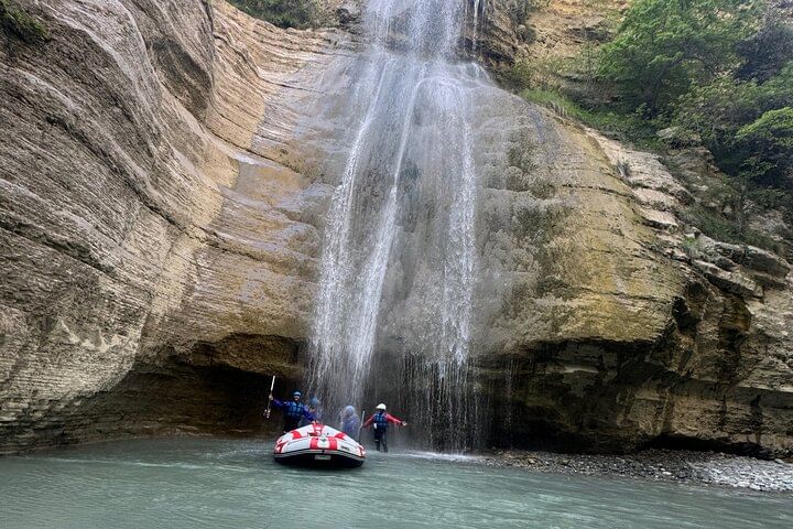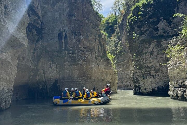 Rafting in Osumi Canyon, Albania. A 11 km adventure between high cliffs and waterfalls, with guides, equipment, and transport from Berat