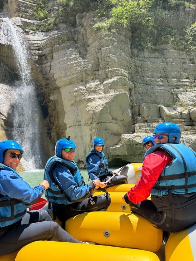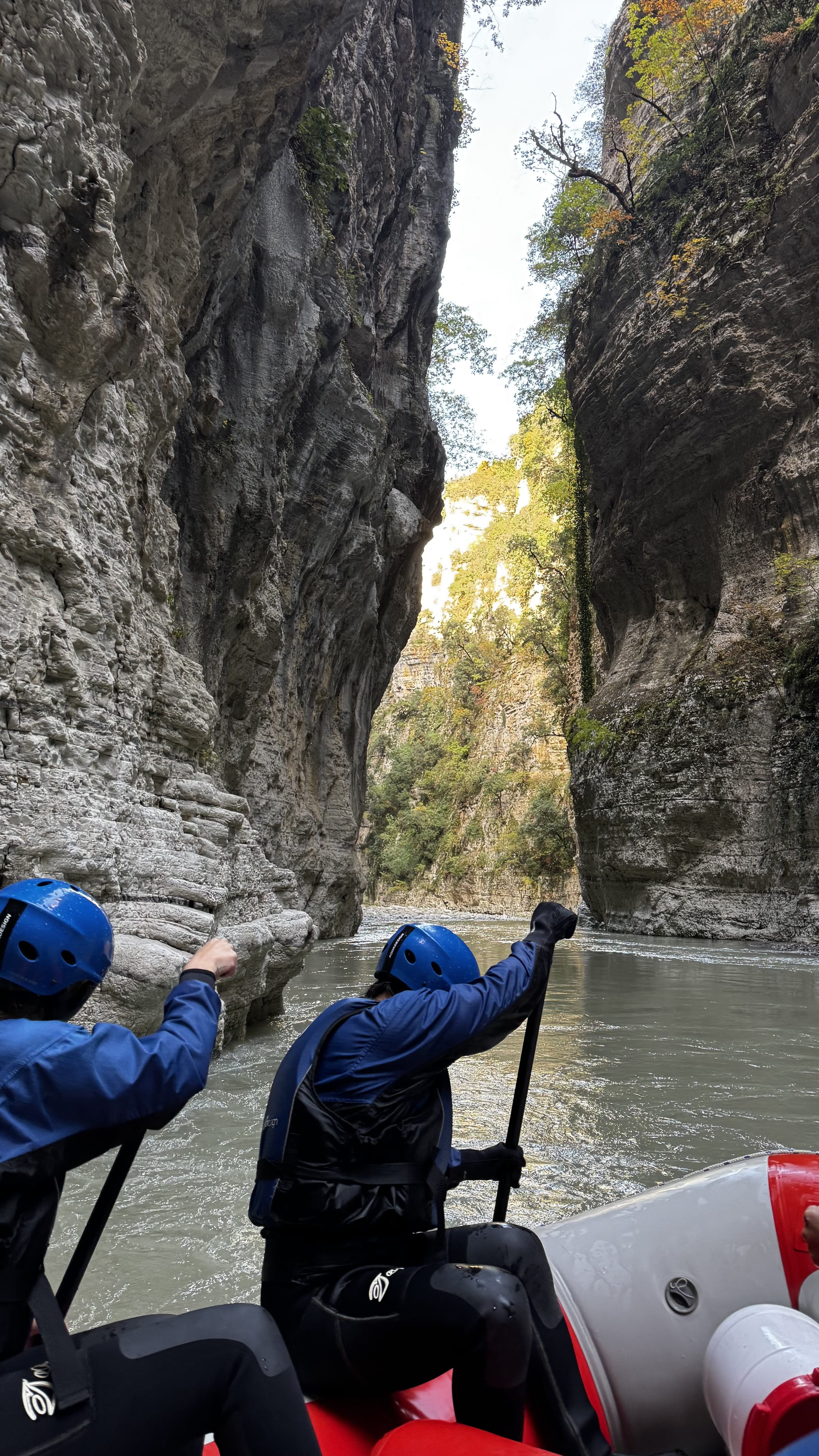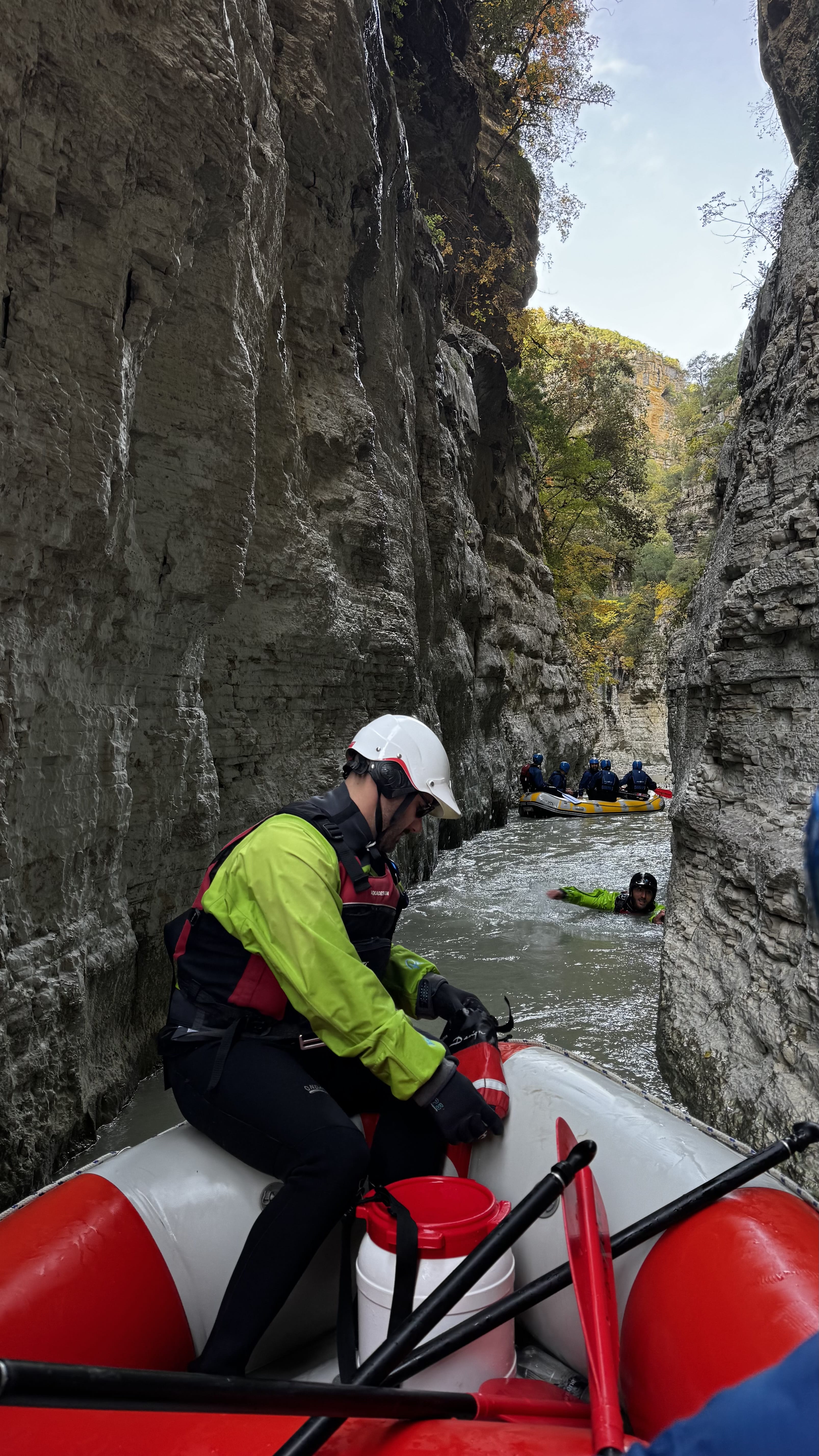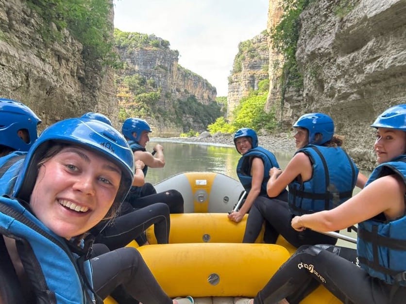 Rafting in Osumi Canyon, Albania. A 11 km adventure between high cliffs and waterfalls, with guides, equipment, and transport from Berat